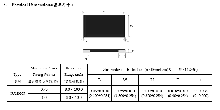 * 阻值范圍寬廣 阻值從 1 mR - 1R